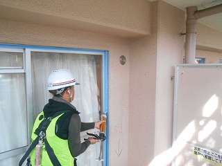 - 南面の足場が組みあがり、現在北面を進めています。本日より南面外壁の調査及びマーキング作業を行っています。バルコニー内にも入るため洗濯物の制限もありご不便をおかけしております。また1工区ではシーリング工事も進めてまいります。ご協力の程よろしくお願いいたします。
