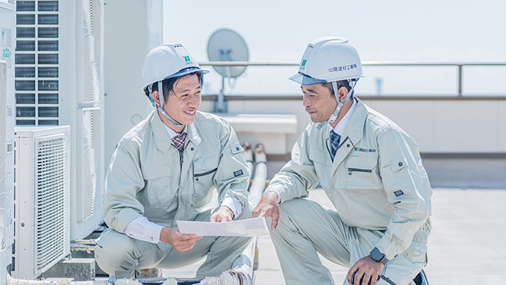 山陽建材工事では、大規模改修工事の現場において労働安全衛生法を遵守し、安全・安心な環境づくりに取り組んでいます。
