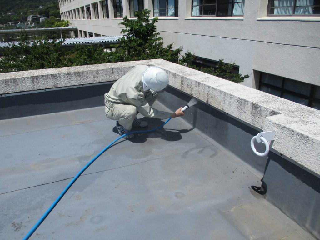 屋内漏水の原因と考えられる箇所に対し一定時間水をかけ、漏れてくるかどうかを確かめます。