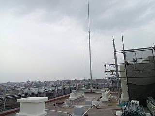 屋上にあった工作物に避雷針が付いていたのですが、今回の工事で工作物を撤去し、その場所に避雷針を新設する事となりました。