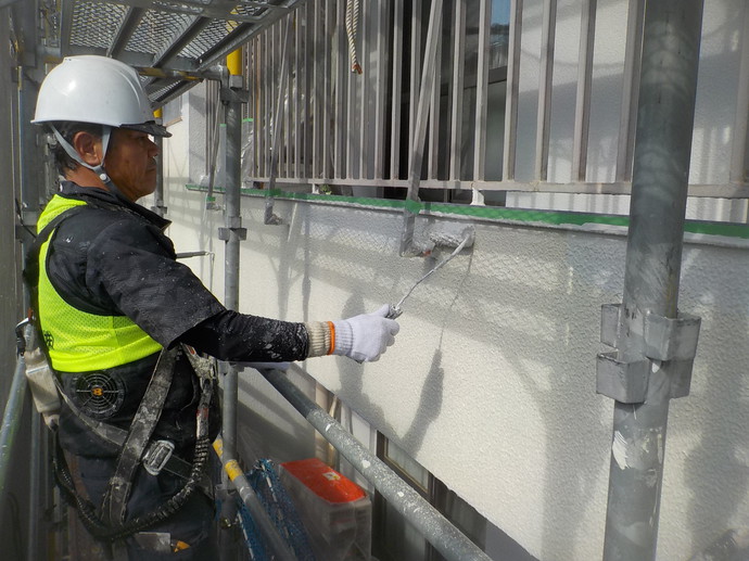 - 東面・南面バルコニー面の下地補修工事を行います。