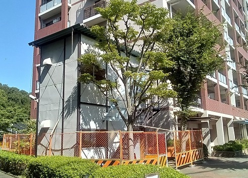 01 工事着工しました。 2024年8月23日 8月の中旬、大規模修繕工事がスタートしました。まずは事務所の設営や仮設トイレ設置・掲示物etc・・工事の準備は意外と時間を要します。残暑が厳しい中ですが、いよいよ足場仮設工事も控えています。熱中症などにも気を付けて最後まで安全第一で作業を進めたいと思います。