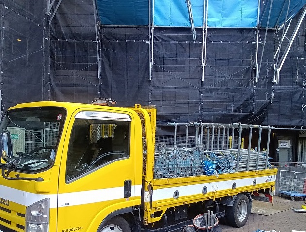 07 先行足場解体 2024年12月04日 冬の到来を肌で感じる季節になりました。今年は厳しい残暑が残る8月下旬から大規模修繕工事をスタートさせましたがいよいよ来週から完成した1工区足場解体を迎えようとしています。本日は屋上塔屋部分のみ先行解体を行いました。最後まで無事故で終えれるように気を引き締めていきます。