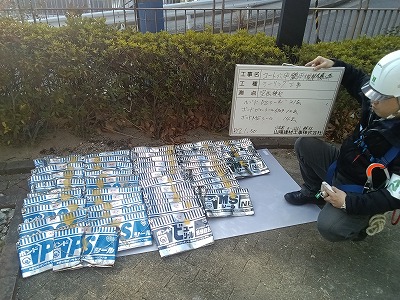 10 工事進捗 2025年2月01日 2月に入り、工事も終盤に差し掛かってきました。作業員の皆さんと共に寒い中みんな頑張って工事を進めてくれています。さて、今回の写真は空缶検収と呼ばれる検査です。大きな現場だと使用済みの空缶も多く大変です。