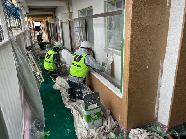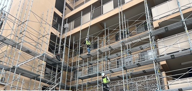 居住者様にはバルコニー使用を制限させていただく期間が発生してご迷惑をお掛けしておりますが安全第一で作業しておりますのでもうしばらくご協力の程よろしくお願い致します。