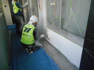 バルコニー面の美装工事が完了し、2階ルーフバルコニーの防水工事を残しほぼ完了いたしました。現在は階段防水工事、玄関枠の塗装、屋上防水工事を進めています。今後は廊下の工事が多くなってきます。階段の通行止め等があります。ご迷惑、ご不便をおかけしますが引き続きご協力の程よろしくお願いいたします。