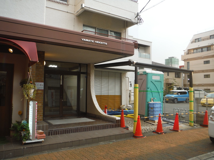 本日から着工致しまして、仮設トイレの設置などを行いました。足場の組立工事は来週からとなります。
