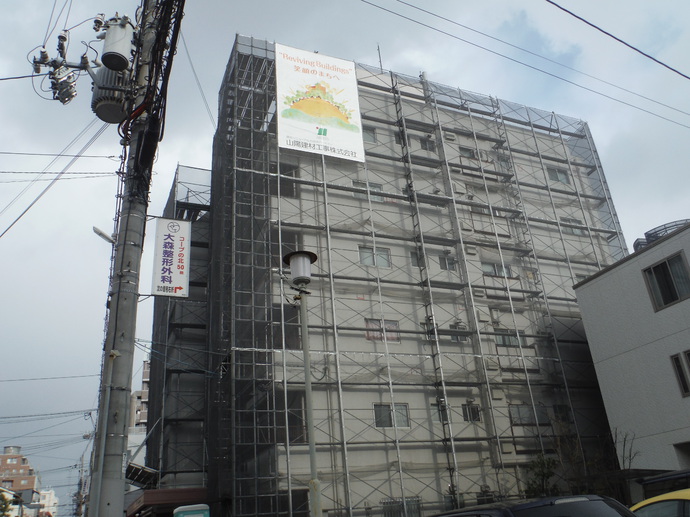 本日、足場の組立が完了しました。何事もなく無事組み終えましたが、これから業種も増えていき、工事も慌ただしくなっていきます。焦らず、安全に作業を進めてまいりますので工事のご理解・ご協力の程宜しくお願い致します。。 -