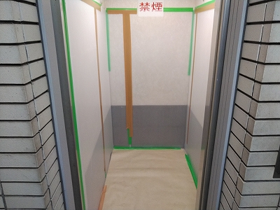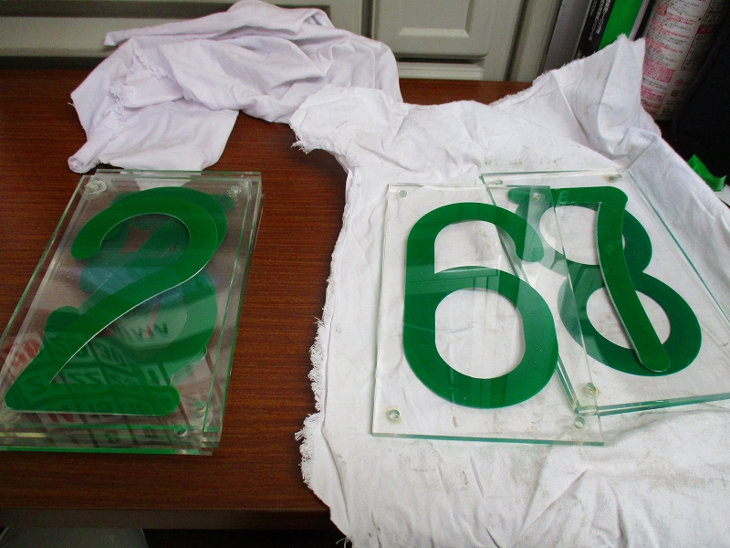 今日も昼から雨が降ってきたので職人さんもお休みです。少し時間があったので階数表示板を洗って取付してきます。