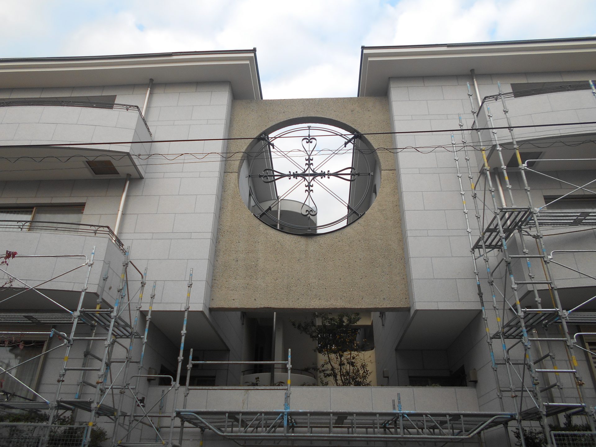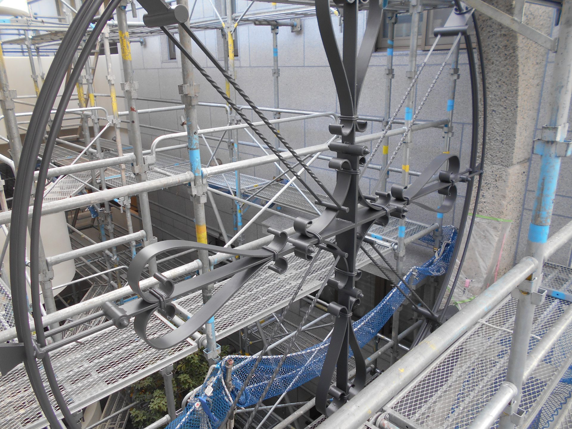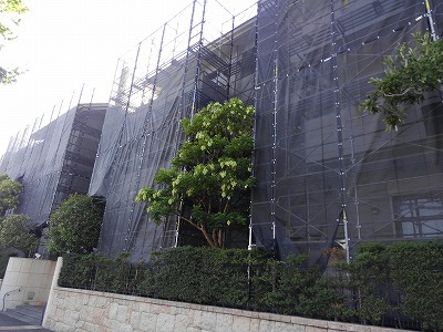 今は足場のシートではっきり見えませんが、足場の撤去後を楽しみにしていてください。 -