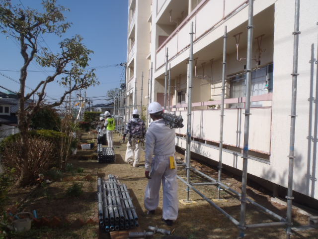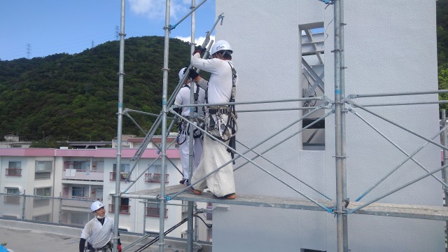 足場仮設工事中
