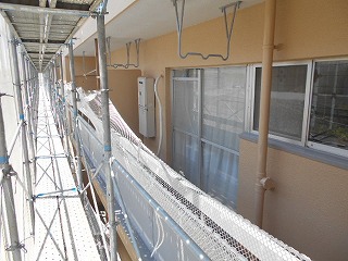 コロナウイルスによる緊急事態宣言が出され、当現場でも毎朝の検温、手洗いうがいの励行等の対応を行いながら工事を進めております。現在南バルコニーを2工区に分けての外壁塗装工事を行っています。洗濯物を干せない日がありご不便ご迷惑をお掛けしております。来週いっぱいで南面の外壁塗装工事は終わる予定です。引き続きご協力の程よろしくお願いいたします。