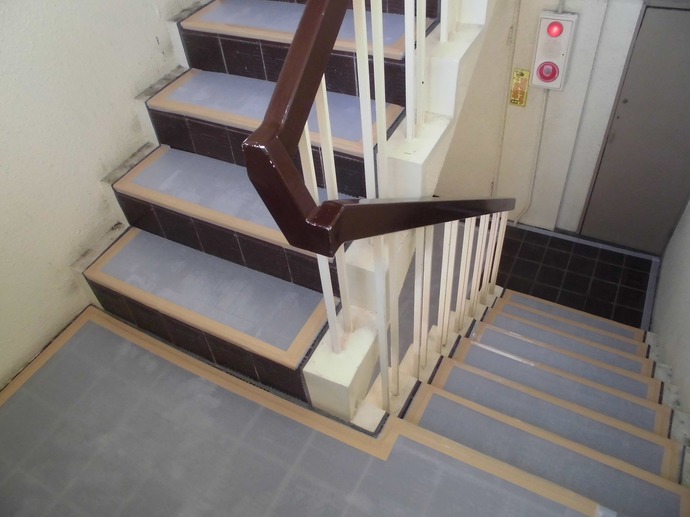 本日は東側共用階段の養生を行いました。