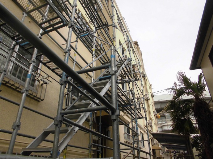 これより10日間程度、資材の搬入や、足場の組立てに伴う金属音などによりご迷惑をお掛けすることになろうかと思います。