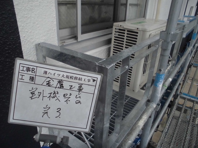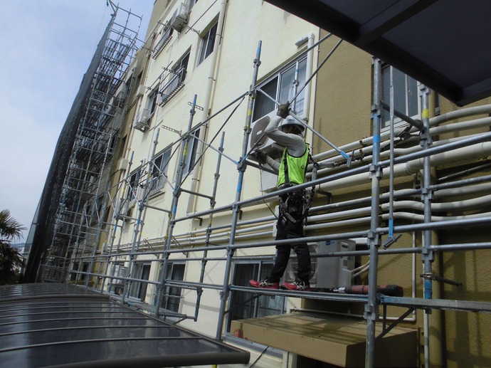 本日は室外機置場の取付け&一部エアコンの復旧作業を行いました。
