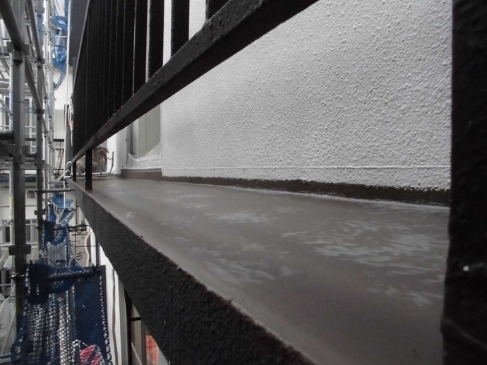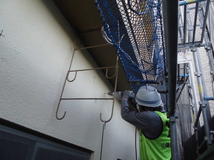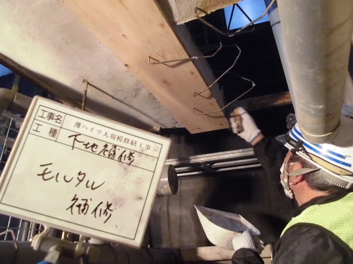 本日は前回レポートしました、コンクリートの悪い箇所を削った跡の埋め戻し作業などを行いました。(写真ご参照)