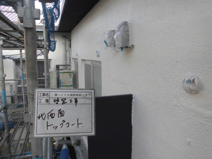 これでほぼ外装は完了し、あとは金物の設置や、配管類の塗装を残すのみとなります。