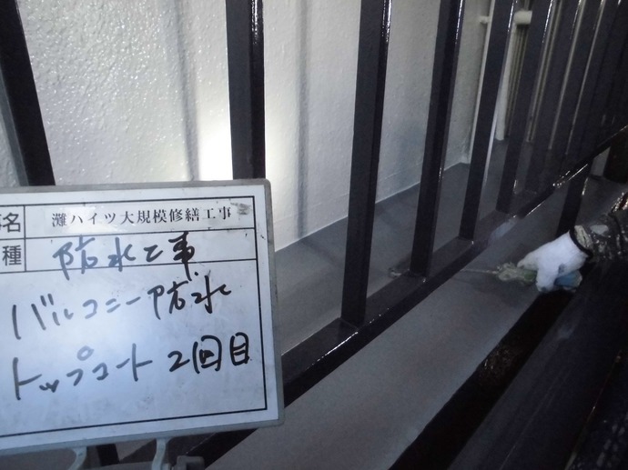 先週末からの悪天候により延び延びとなっておりました屋上防水も、残すところトップコートのみとなりました。