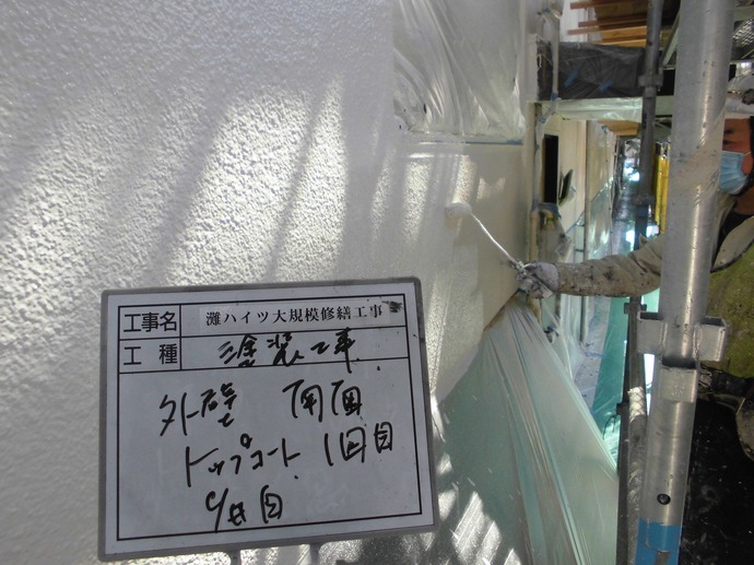 明日2回目の塗布を行い、いよいよ建物の外装をすべて終えることとなります。