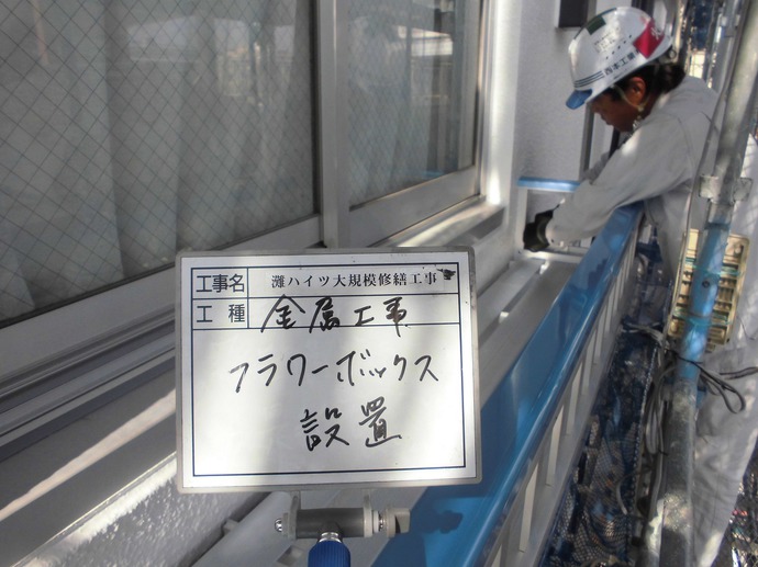 本日は金属工事の一番手として、フラワーボックスを取り付けました。