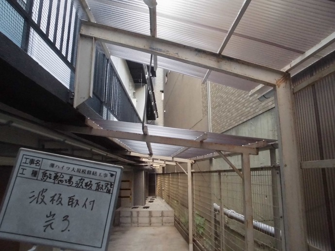 さて本日は、駐輪場に新しい屋根を取り付けました。