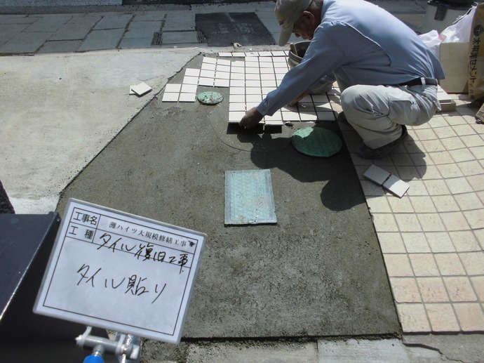本日は本工事の最終工程「入り口タイル復旧工事」を行いました。