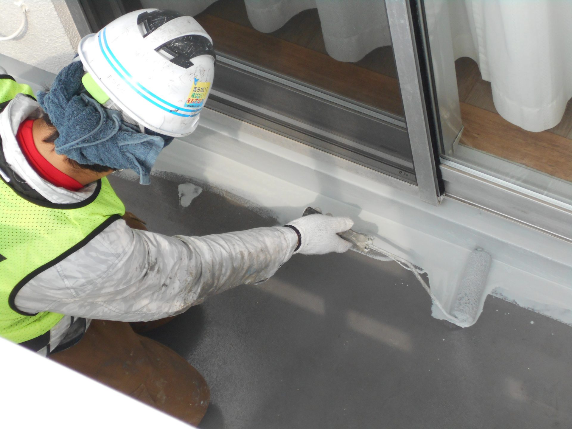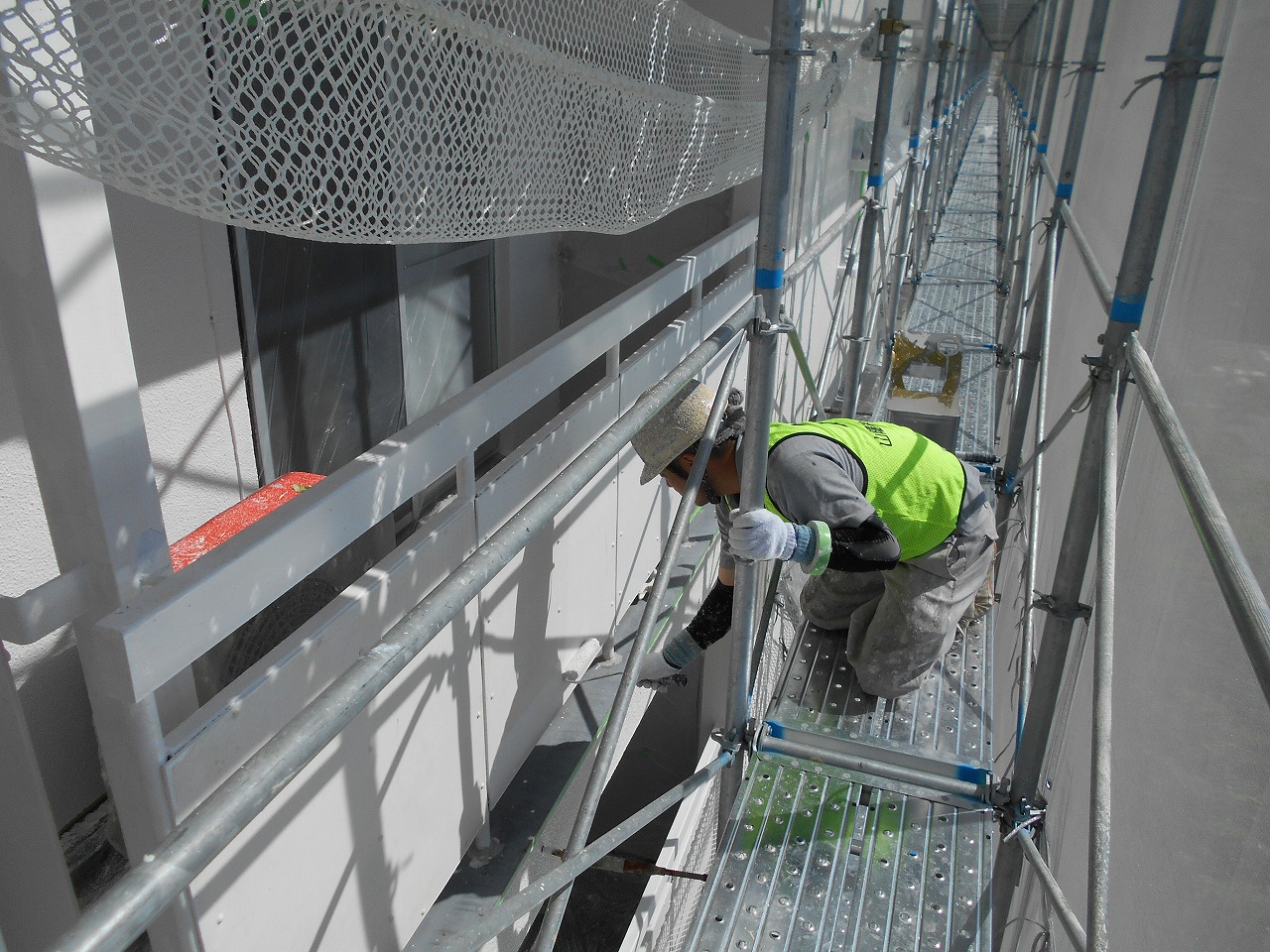 先週末に「バルコニー内」の塗装工事が終わり、今週初めより床面の「ウレタン防水」に着手致しました。10号室列から6号室列の居住者の皆様には今週いっぱいご不自由をお掛けいたします。引き続き週明け頃より五号室列から1号室列に着手致します。いよいよ暑くなっていきますが、ご協力、ご辛抱宜しくお願いします。