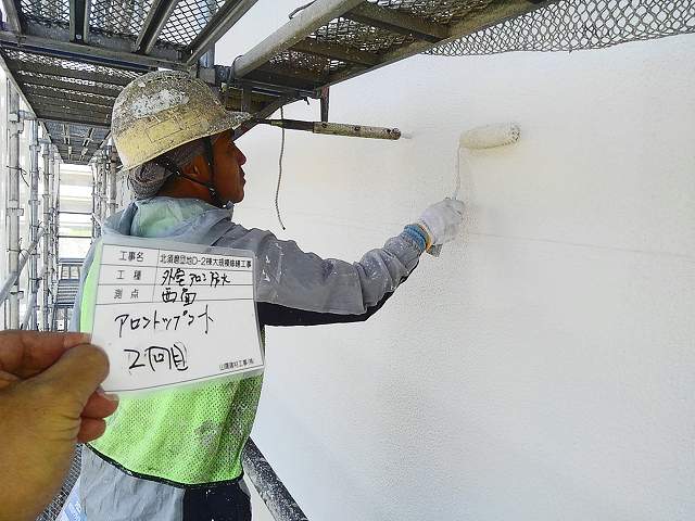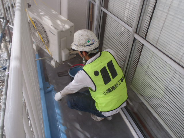 昼間は、段々暑さを感じる事が多くなってくる季節になりました。日々、朝礼などで熱中症予防の為にこまめな水分補給をとるように職方には指示をしています。さて、ベランダ防水は3工区の土間ウレタン防水工事を行っております。天候・湿度に影響されるため、晴れの日が続くように毎日願っています。ベランダ工事の完全終了まであとわずかです。もうしばらくご辛抱ください。
