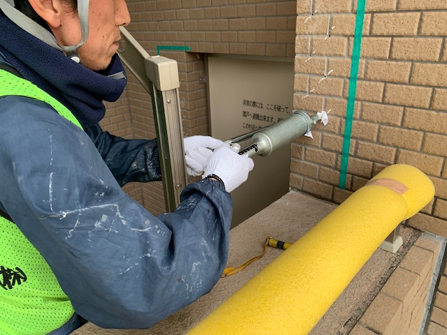 朝夕はまだまだ寒いですが、日中は暖かく作業日和が続き、順調に工事が進んでおります。さて、現在窓廻りのシーリング打替工事を行っております。硬化に少し時間を要しますので、居住者の皆様はご注意くださいますようお願いいたします。