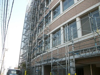 昨日より南面の足場組立が始まりました。これから工事完了まで安全第一で進めてまいります。お住まいの皆様にはご不便、ご迷惑をおかけ致しますがご協力の程、宜しくお願い致します。