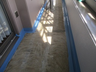 バルコニー防水工事中。