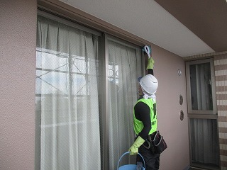 現在、南面バルコニーの巾木・側溝・手すり壁天端のウレタン防水を行っています。今週で終わり来週より床シートを貼る工事に入ります。これが終わりますと南面バルコニーの大きな工事は終わります。もうしばらく洗濯物の規制が続きますが、ご理解ご協力の程宜しくお願い致します。