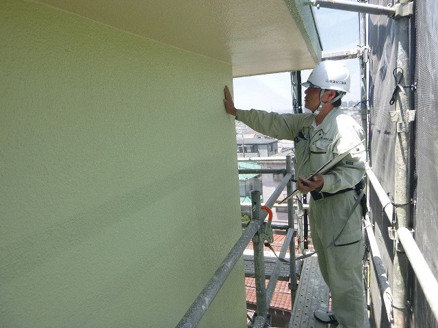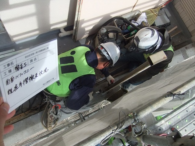 工事はベランダ作業が大方終了し、弊社足場解体前検査を行ないました。入居者の皆様には工事期間中ご不便・ご迷惑をお掛けしましたが、いよいよ足場解体が迫って来ました。最後まで安全第一で作業して参りますので、引き続きご協力の程、宜しくお願い致します。 -