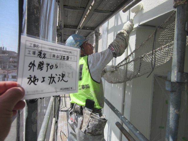 現場は現在、2工区の外壁アロン塗装を行っております。連休明けには側溝のウレタン防水作業を1工区から始める予定です。
