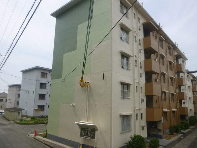 梅雨に入り、蒸し暑くうっとうしい天候が多くなってきている日々ですが、鈴谷住宅第一棟は足場解体作業