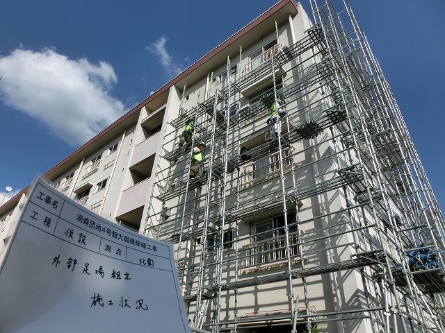 週に1回程度は弊社サイトの現場レポートを更新しますので、機会があれば是非ご覧下さい。9月2日より外部足場工事が着手しました。安全第一で進めてまいりますので、今一度ご協力をお願いいたします。