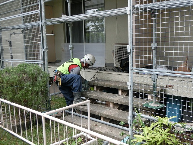 今後、足場上での作業が増えますので、その際に作業員がバルコニー内に出入り致します。