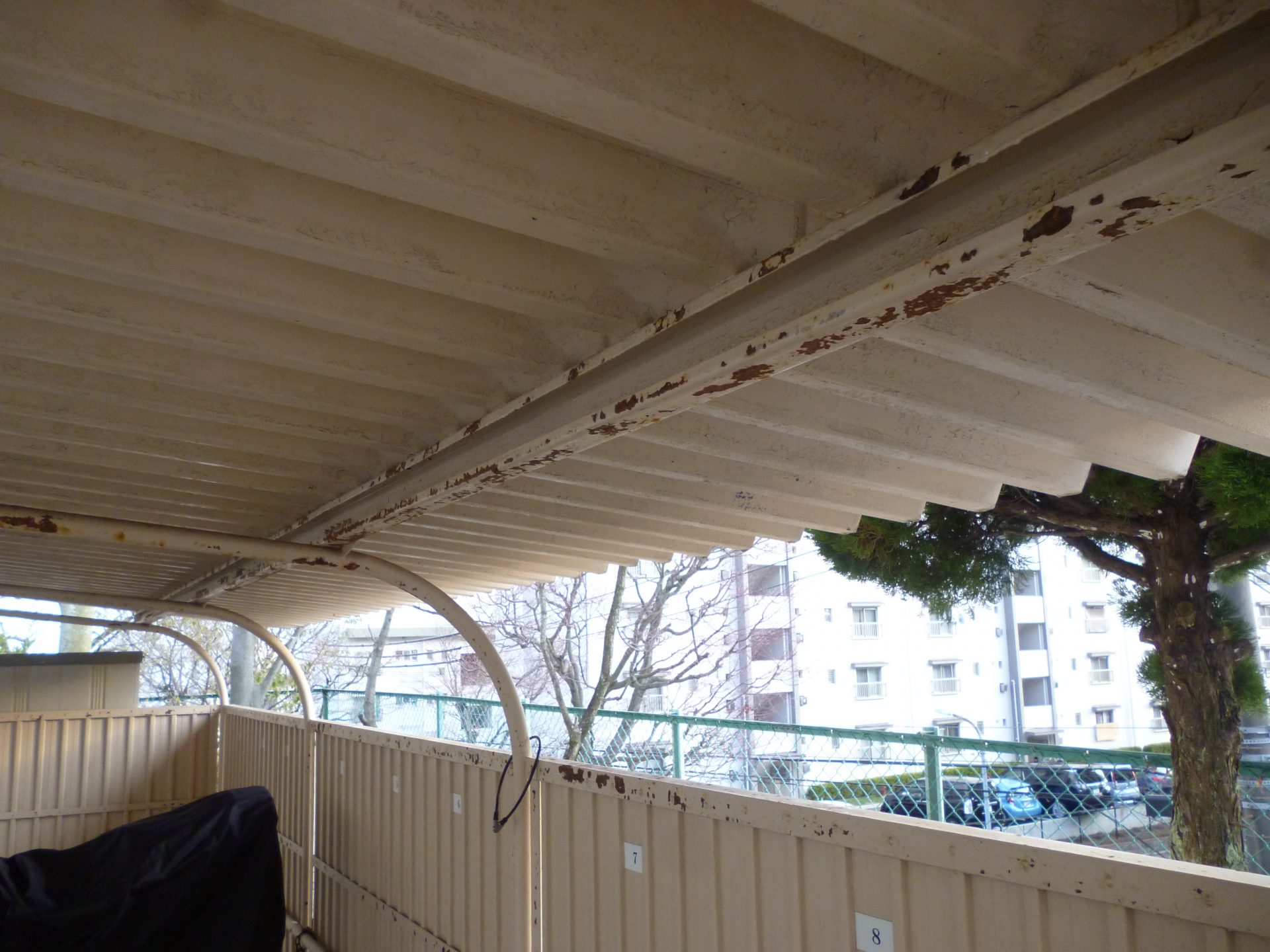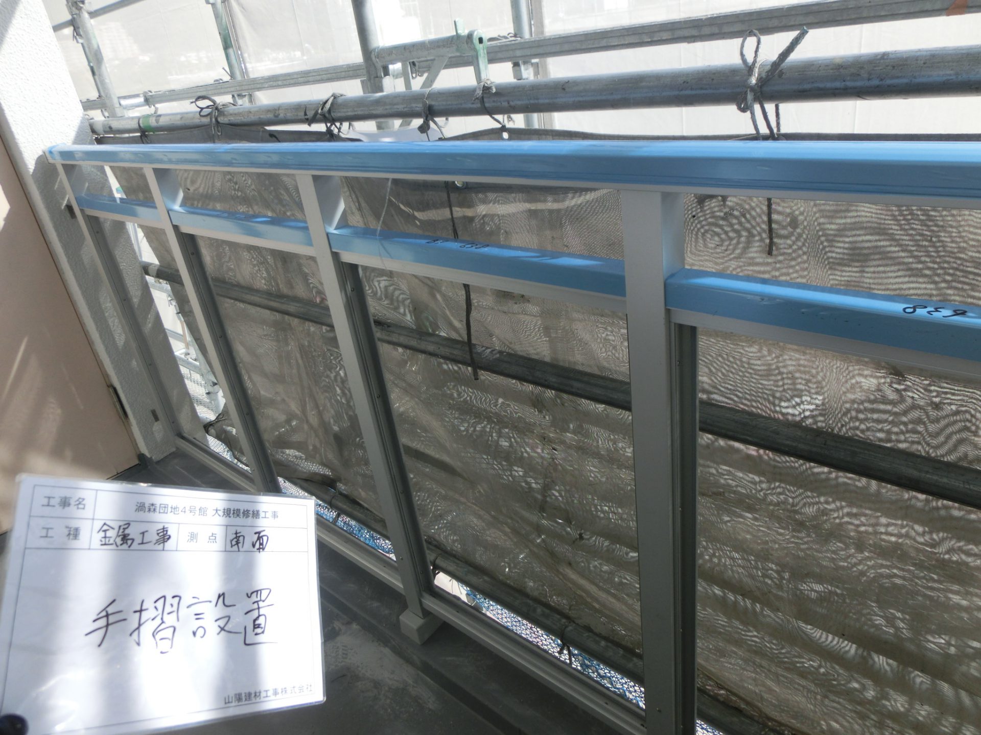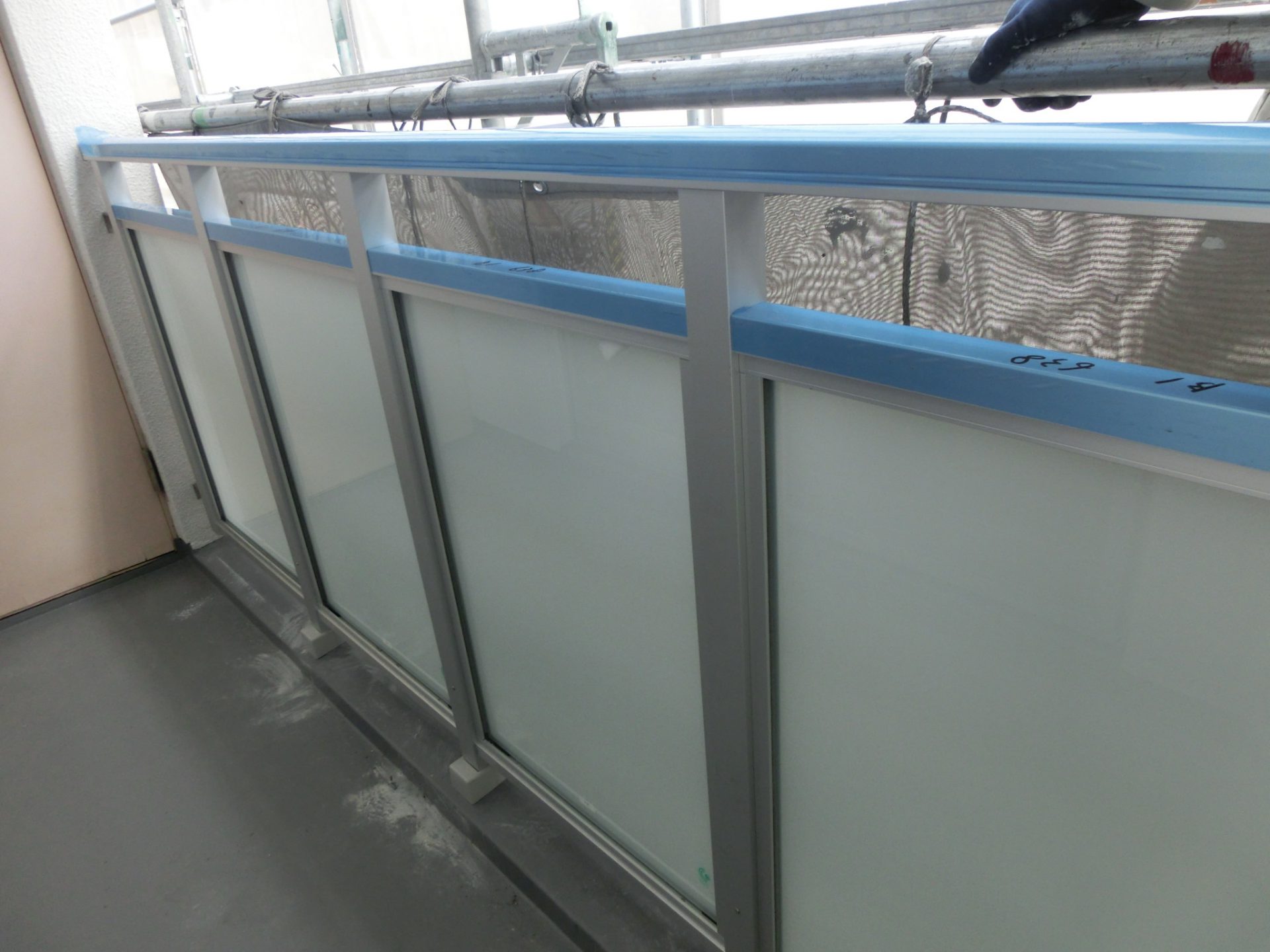 南面の手摺撤去が完了し、手摺撤去後の補修工事を行っています。バルコニーに出る際は十分注意してください。今後は北面、南面の面格子撤去後の補修作業のほうに移っていきます。窓を開ける際も十分注意してください。