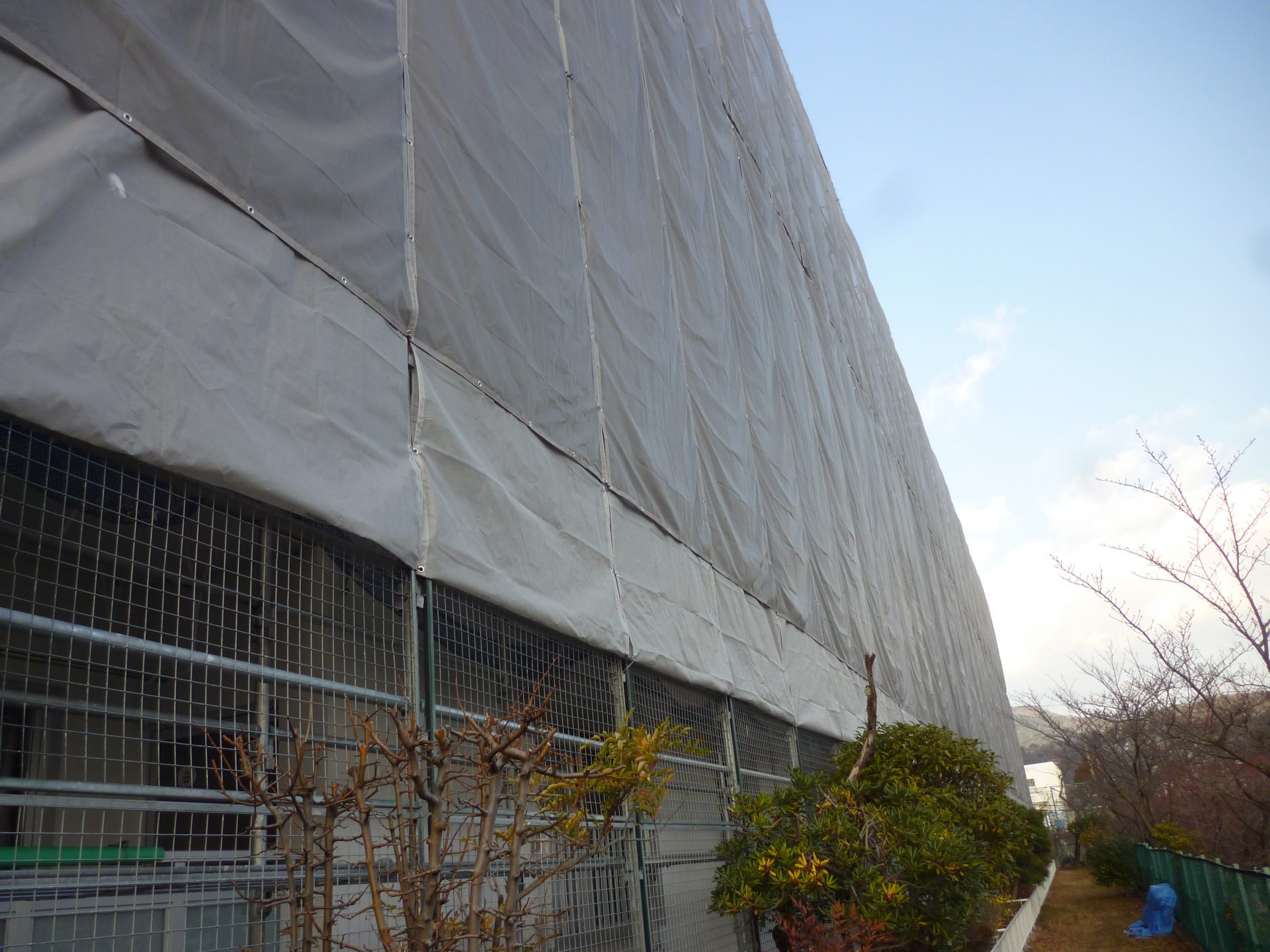 年末年始休暇に入る前に絞っていた足場のメッシュシートを復旧致しました。これからまたあしば上での作業も行ってまいります。