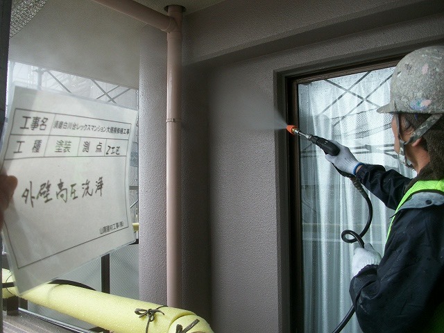 今週は一部共用廊下の高圧洗浄と、各戸順を追っての玄関扉枠さび止め塗装を行っておりますので、居住者の皆様には扉や窓の開け閉め等、ご協力頂いております。
