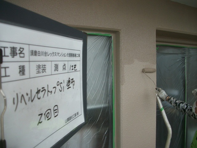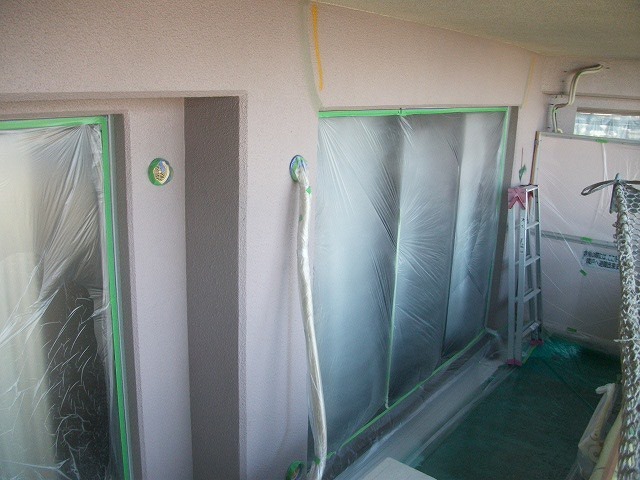 先日は色決めのアンケートにご協力いただきましてありがとうございます。色の決定により今週より1工区の外壁及びバルコニー内壁の塗装工事が始まりました。窓をビニールで養生します。約1週間窓の開閉ができませんがご協力の程宜しくお願い致します。