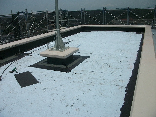 梅雨明けしたような天気になり、気温も高くなり熱中症が起こりやすい時期になってまいりました。屋上防水は日影がほとんどないので特に注意をして工事を進めております。バルコニー内の工事もほぼめどがつき、来週よりセットバック部分の足場を解体しルーフバルコニーの防水工事に入ってまいります。