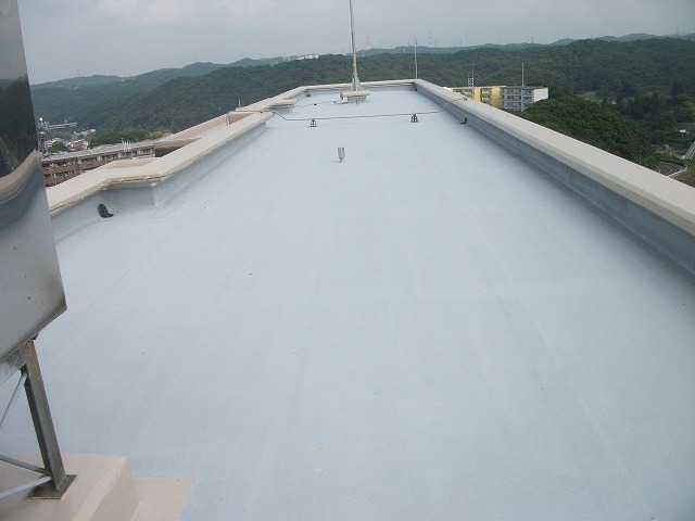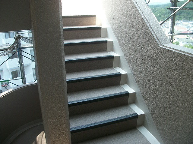 現在、10~8階廊下の側溝と巾木のウレタン防水が終わり床シート張りを行っております。通行の際は、足元にご注意をお願いいたします。そのほか10階屋上のアスファルト防水及び各階ルーフバルコニーの防水工事も進めておりますが、階下の皆様には騒音と振動が発生しご迷惑をお掛けしておりますが、もうしばらくご協力の程宜しくお願い致します。