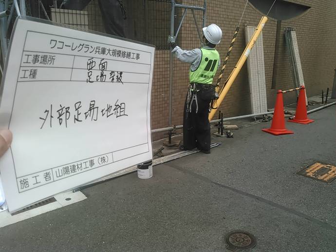 外部足場工事がスタートしてから入居者の皆様には、お車の移動や単車の移動など大変ご迷惑をお掛けしております。皆様のご協力により、足場組立も順調に進んでいます。ご協力感謝します。最近は天候が変わりやすくそれだけが心配です。引き続き安全第一で全員気を引き締め作業していきます。宜しくお願い致します。