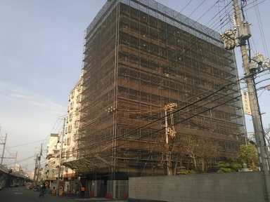 暖かい春の陽気を感じる日もありますが最近の天気は気まぐれで変わりやすく天候に泣かされることも少なくありません。足場工事は少ないスペースでの荷上げや組上げに苦労しながらも鳶職人さん達のがんばりで安全確実に作業を進めております。これから、下地補修やシール工事・塗装などバルコニーが使えない日が多くなります。入居者の皆様にはご迷惑をお掛けいたしますが、ご協力のほど宜しくお願い致します。