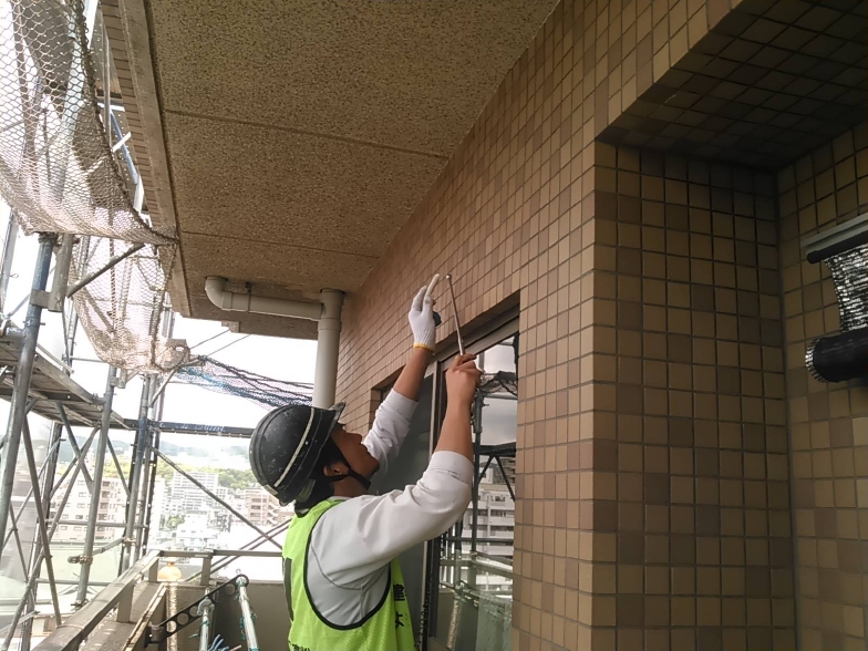 現場はいよいよ下地補修調査が始まりました。これから本格的に下地補修工事が始まっていきます。これまで以上の振動・騒音を伴う作業が予想されるため住民の皆様には何かとご迷惑をお掛けすることも多くなると思います。どうか皆様のご理解・ご協力を宜しくお願い致します。