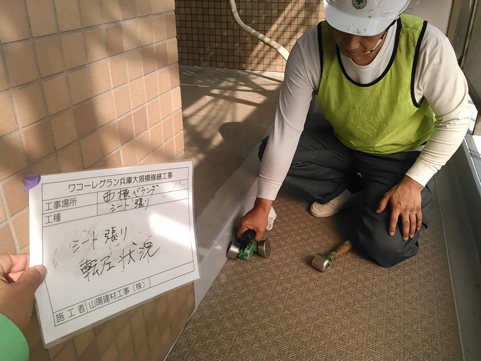 梅雨の真っ最中天気に翻弄され思うように行かない時もありますが、現場は元気いっぱいに作業員共、がんばっていきたいと思っています。作業は現在東棟ベランダシート張りをしていますが一日でも早くベランダを使って頂くよう精一杯がんばりますので引き続きのご協力お願い致します。
