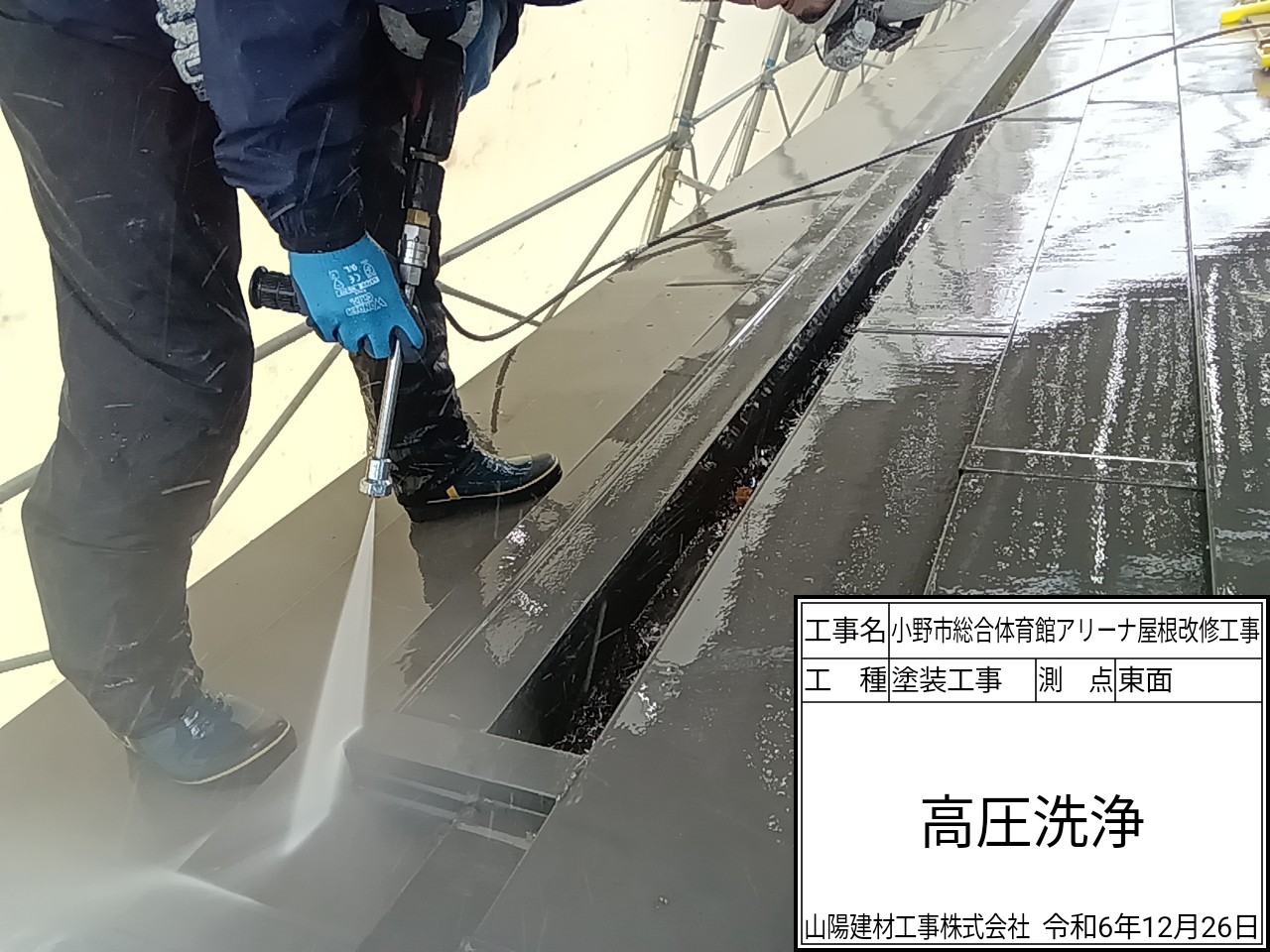 04 屋根板金工事完了 塗装工事実施 2025年1月23日 年明け早々から気温が低く日中は強風吹くなど作業が大変でした。