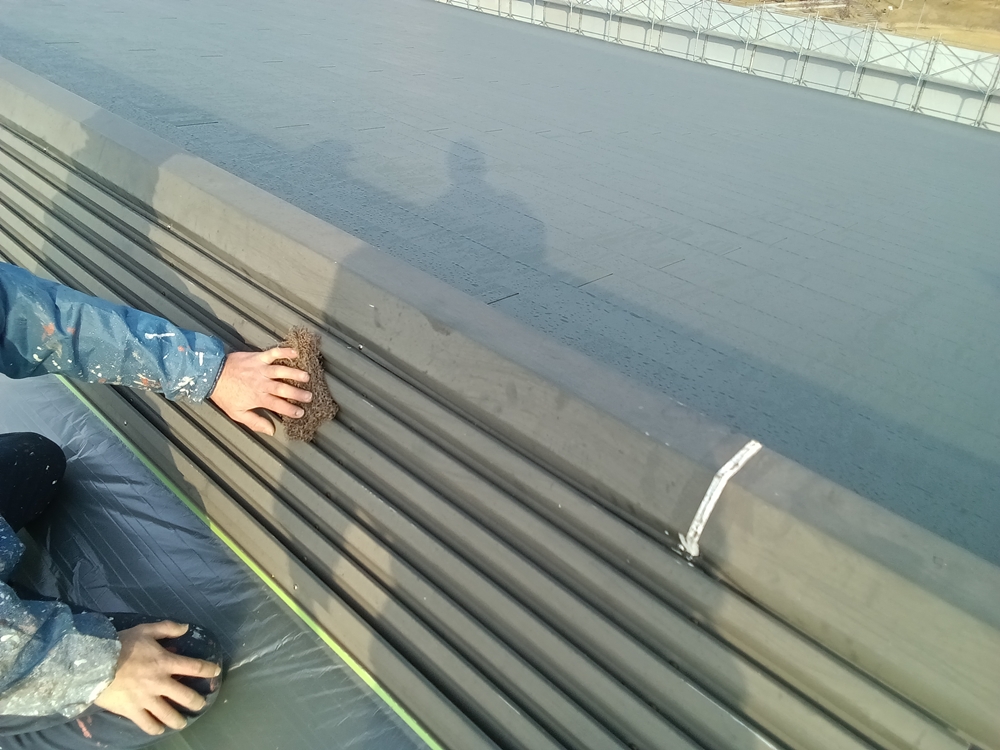 その中で、協力会社の皆さんは屋根上で滑らないよう足元注意で作業をして頂き、予定より早めに終わりました。