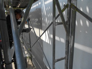 外壁の防水塗装工事中。